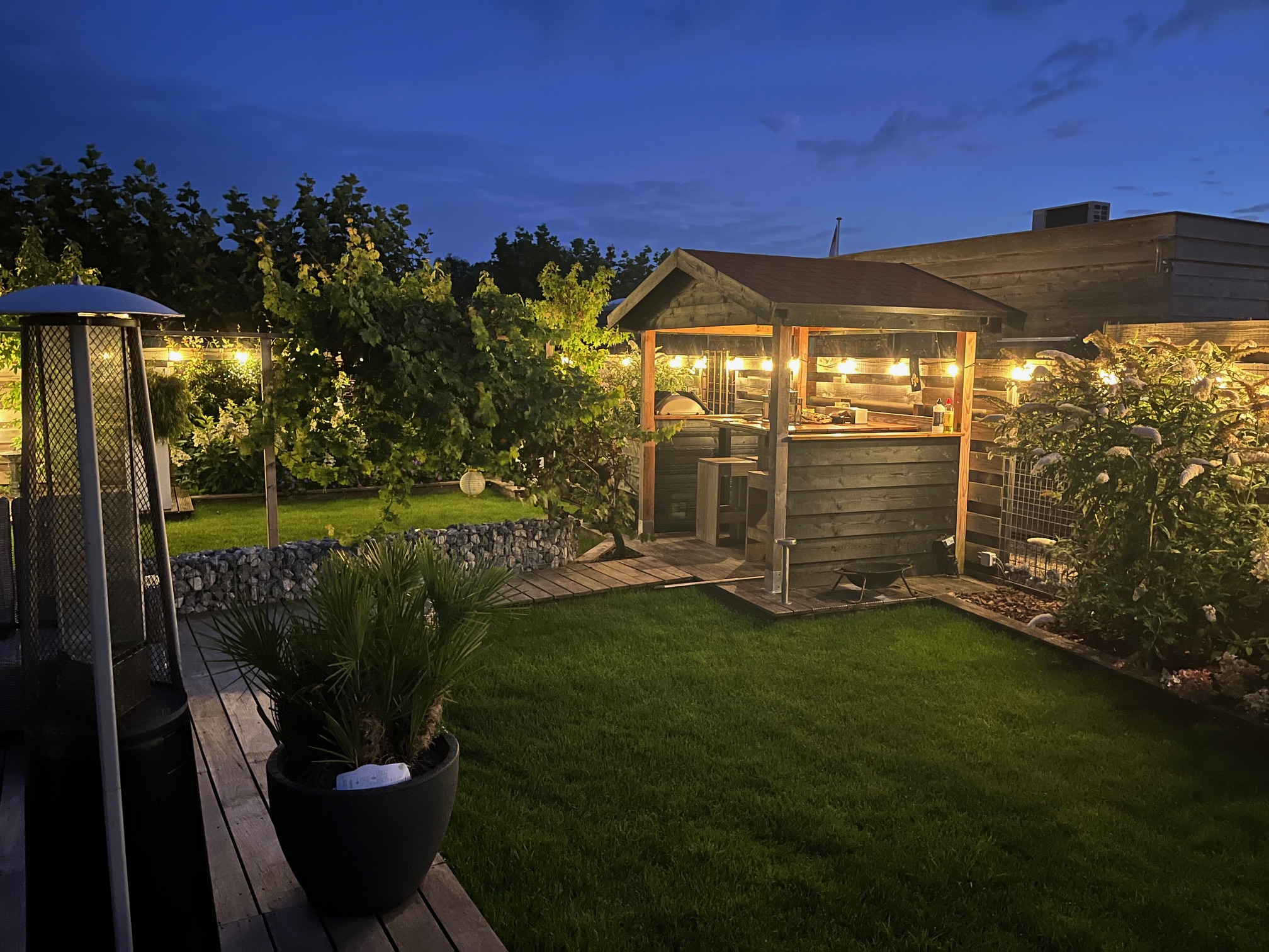 In onze sfeervolle en warm verlichte buitenbar vind je een barbecue die je kunt gebruiken voor een culinaire avond.